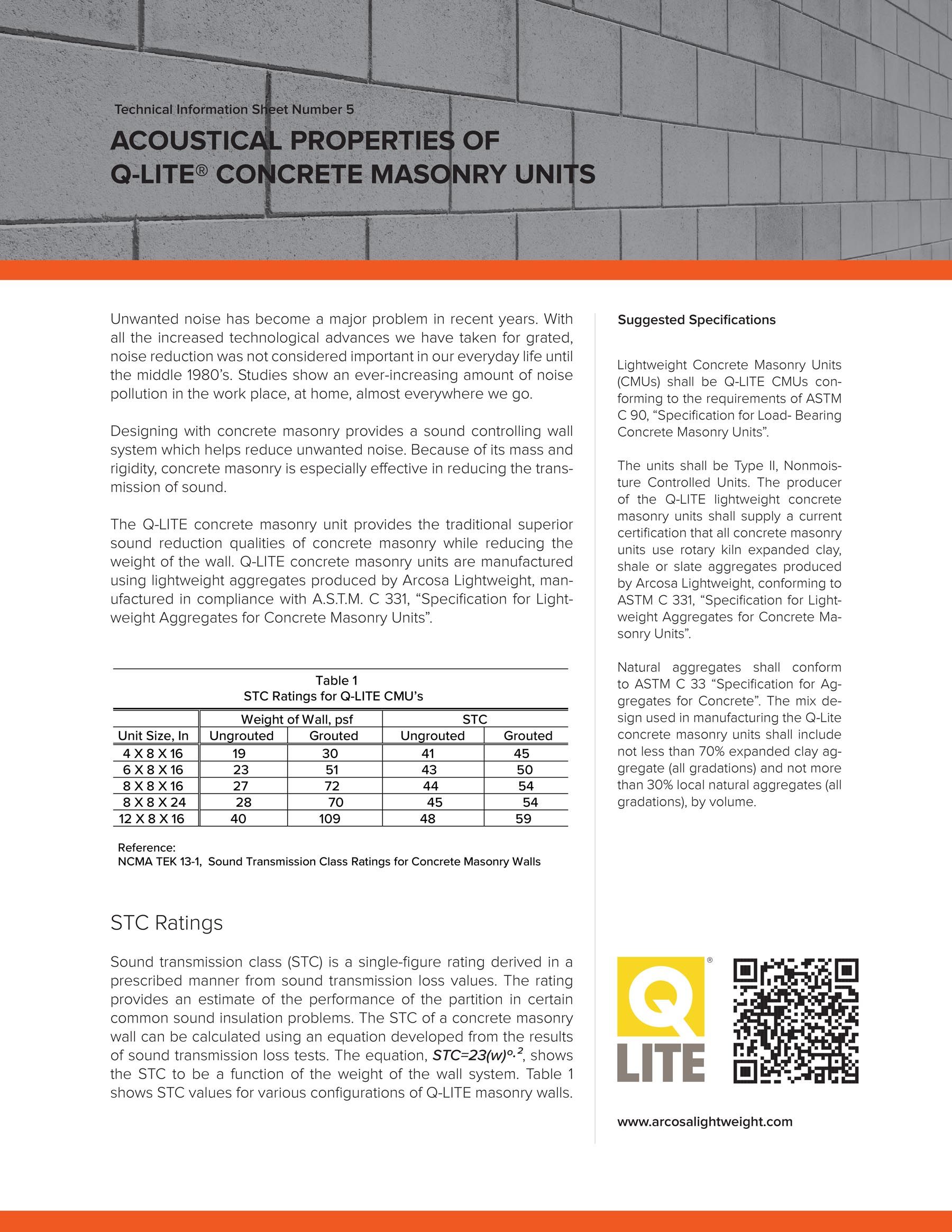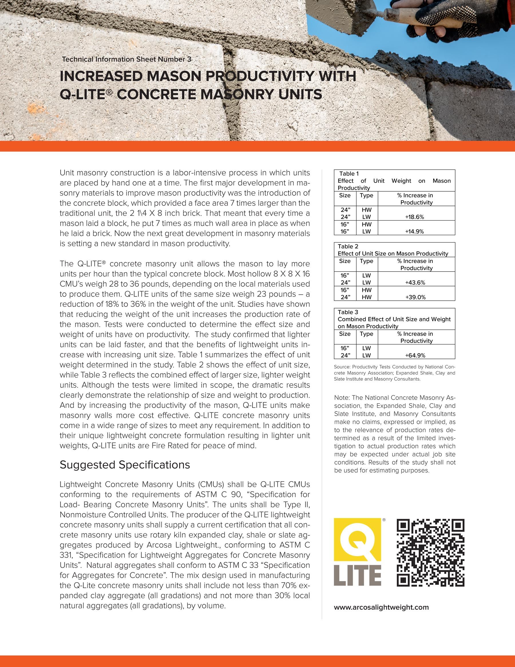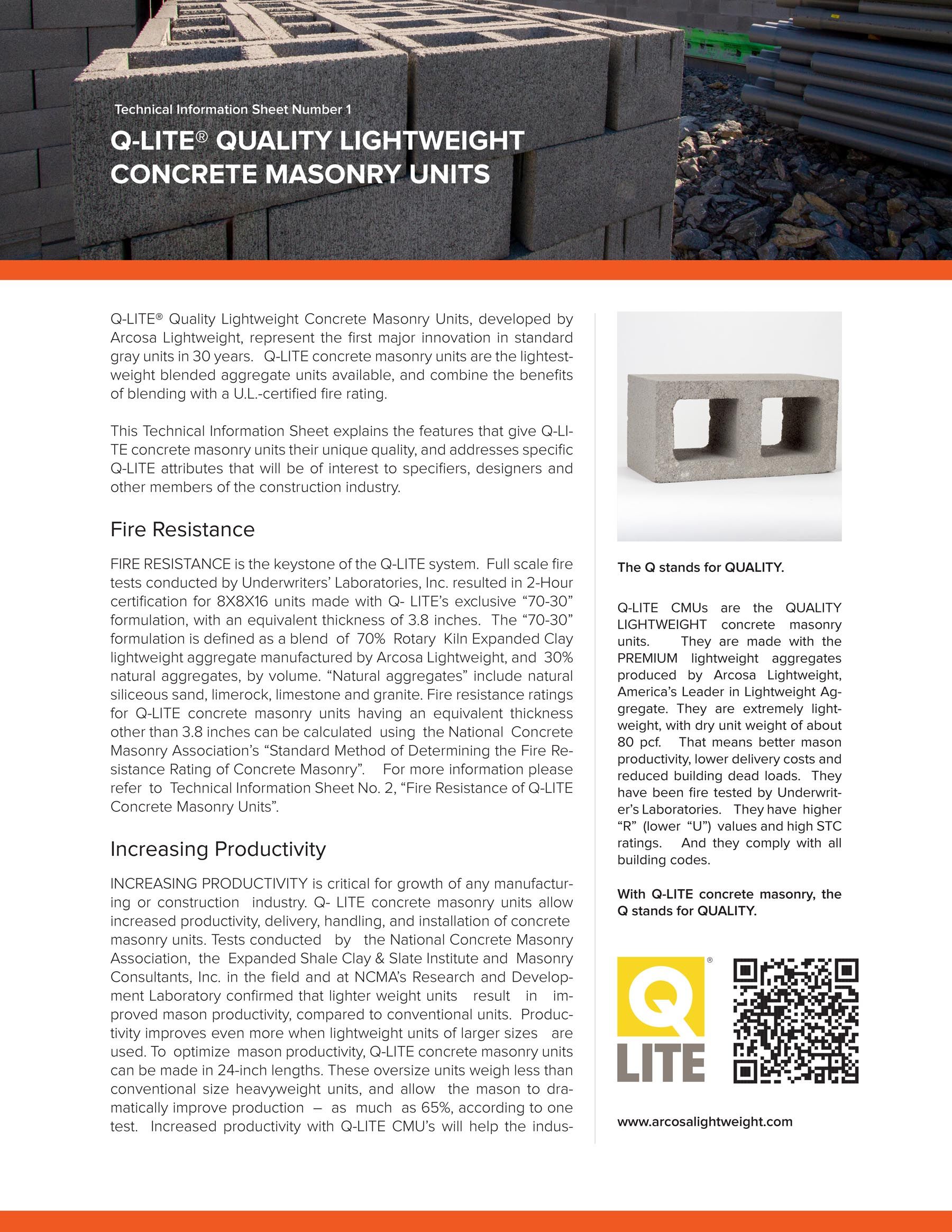 These Technical Information Sheets explains the features that give Q-LITE concrete masonry units their unique quality, and addresses specific Q-LITE attributes that will be of interest to specifiers, designers and other members of the construction industry.